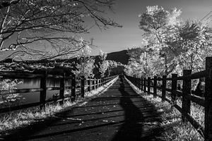 Walkway at a local campsite near Mount Fuji, Japan. Shot on an infrared converted Fuji X100F using a Hoya RM90 filter.